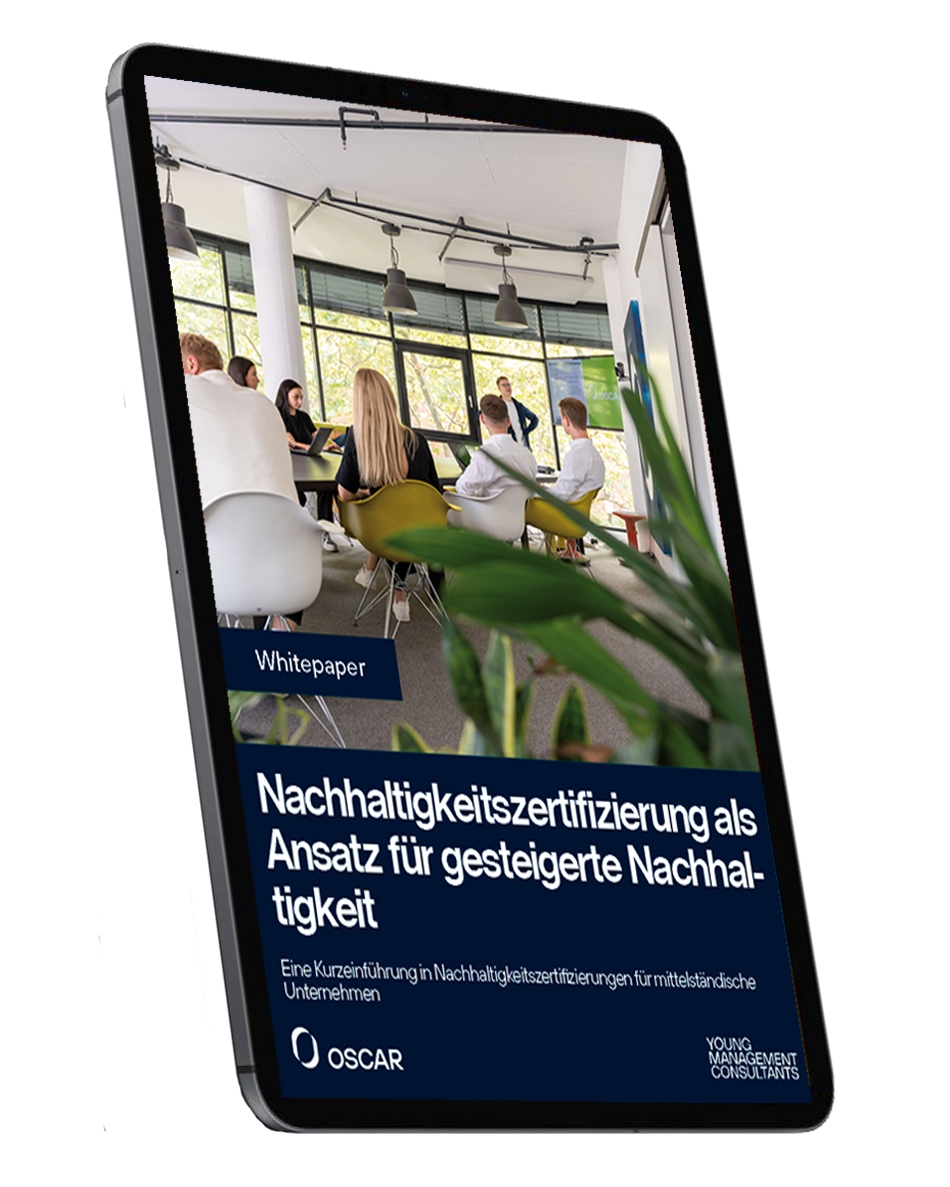 Laden Sie sich unser kostenloses Whitepaper herunter und erfahren Sie mehr über Nachhaltigkeitszertifizierungen für mittelständische Unternehmen.